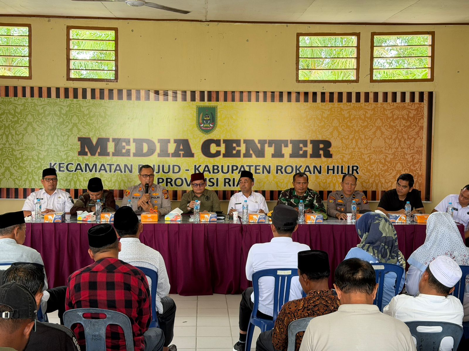Rapat tersebut dihadiri oleh Kapolsek Pujud AKP Boy Setiawan, S.A.P., M.Si., Camat Pujud M. Nasri, S.Sos., unsur TNI, tokoh adat, tokoh masyarakat, tokoh pemuda, kepala sekolah, perwakilan perusahaan, hingga para penghulu se-Kecamatan Pujud.