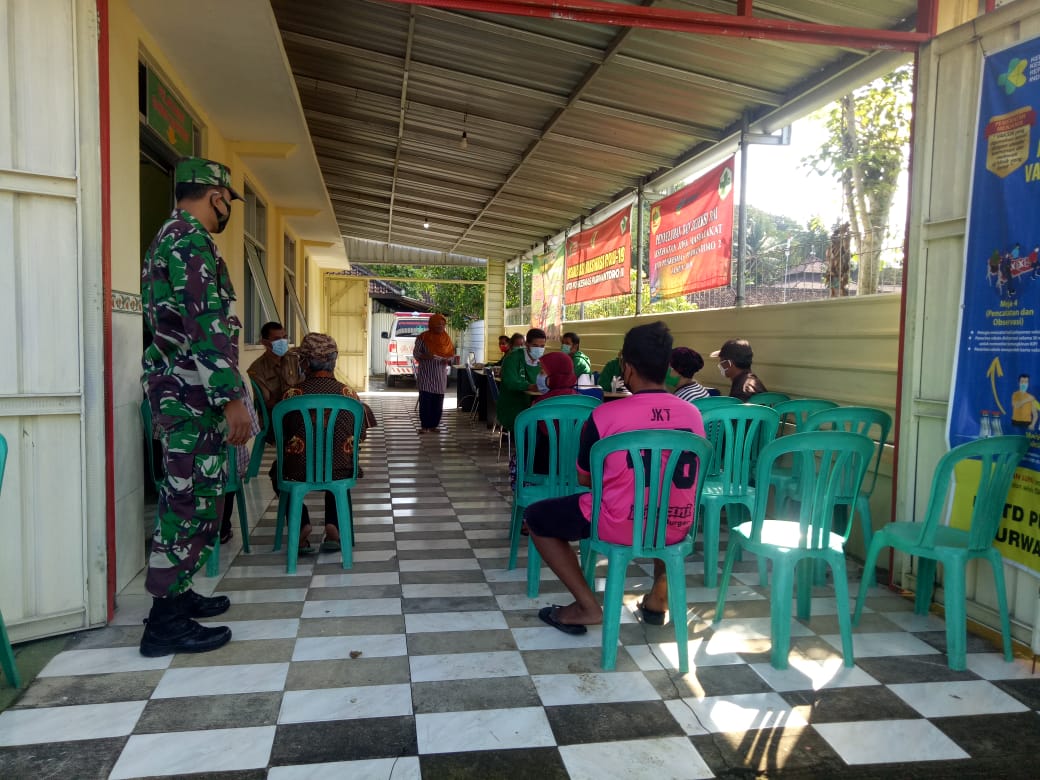 Anggota Babinsa Serma Soendro dan Serda Sutrisno mendampingi 82 warga melaksanakan vaksinasi Covid-19 dosis ke 2, guna dalam pelaksanaannya berjalan dengan lancar.