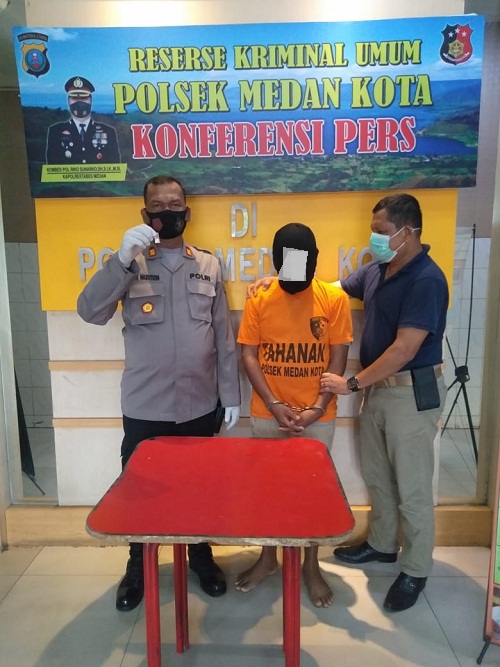 Kapolsek Medan Kota Kompol Rikki Ramadhan SIK melalui Kanit Reskrim Iptu Marvel mengatakan, bahwa pelaku berhasil diamankan petugas di jalan Brigjen Katamso, kel. Sei Mati, Medan, Selasa (11/5/202) sekira pukul 11.00 Wib.