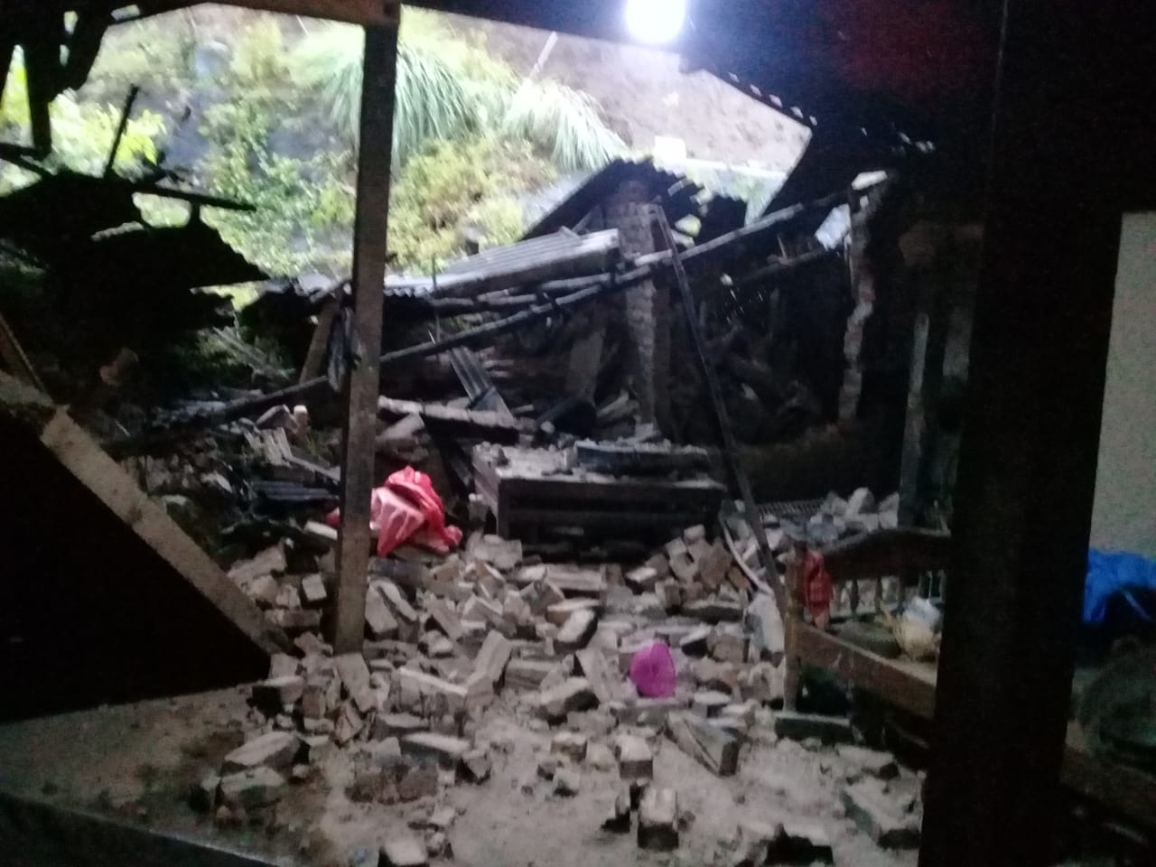 “Korban jiwa tidak ada, Mas. Cuma ada seorang nenek penghuni rumah yang terluka di kakinya. Kena batu bata efek bangunan rumahnya yang tertimpa longsor,” tutur Patkay, personel SAR setempat.