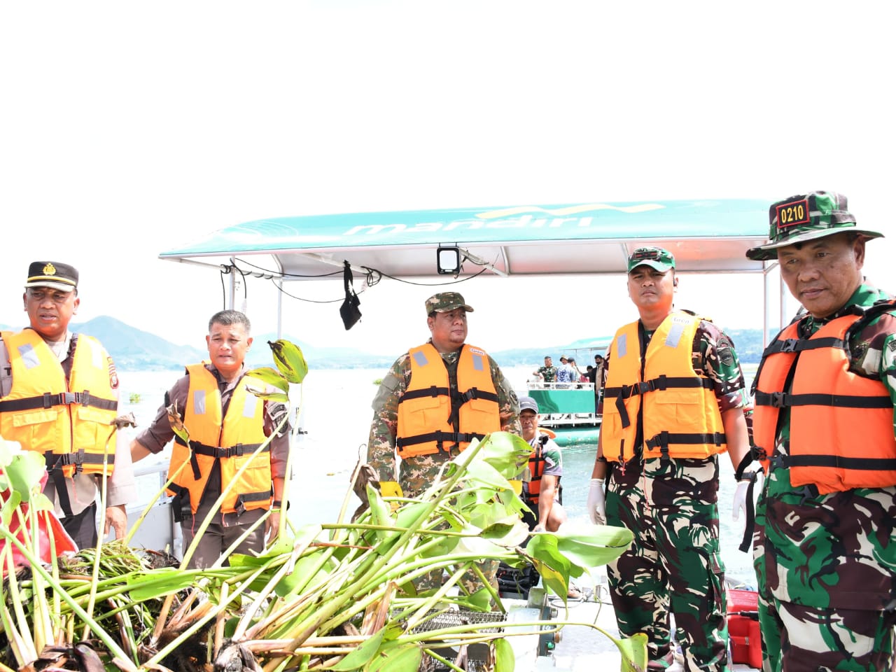 Samosir – Dalam rangka memperingati HUT 75 Kodam I BB, Bupati Samosir Vandiko T. Gultom bersama Dandim 0210/TU Ronald Tampubolon terjun langsung membersihkan eceng gondok di Danau Toba. Karya Bhakti TNI Manunggal memelihara Danau Toba Bersinar, Bersih, Nauli dan Ringgas dilaksanakan secara serentak di wilayah Korem 023/KS. Untuk Kabupaten Samosir dilaksanakan di Desa Palipi Kecamatan Palipi, KamisĀ (12/6/2025).