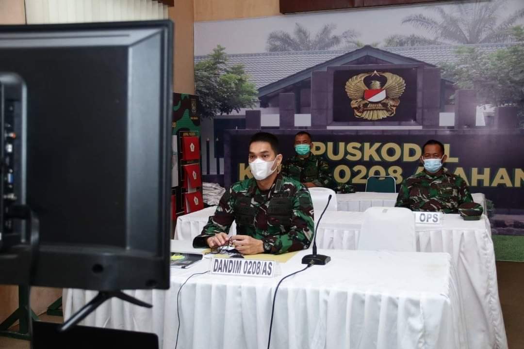 Kegiatan tatap muka secara virtual zoom yang diselenggarakan oleh Menkopolhukam, diikuti oleh Komandan Kodim 0208/AS Letkol Inf Sri Marantika Beruh, S.Sos yang didmpingi oleh Plh. Perwira Seksi Teritorial Letda Inf R. Damanik dan Plh. Perwira Seksi Operasi Letdan Inf SM. Butar-butar. (Pendim 0208/AS)