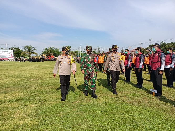 Apel Gelar pasukan di Alon-alon Kanigoro Kabupaten Blitar ini terdiri dari jajaran TNI-Polri, Basarnas, BPBD, PMI, Tagana beserta instansi terkait lainya, Senin (23/11/2020).
