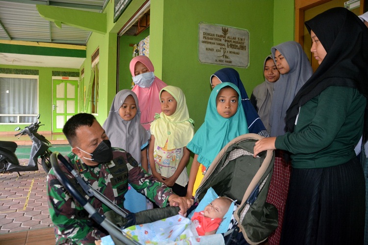 Boyolali, Goosela.com – Dandim 0724/Boyolali Letkol Inf Aris Prasetyo, S.I.P., M.I.P bersama perwira staf Kodim 0724/Boyolali melaksanakan kegiatan silaturahmi berbagi kebahagiaan bersama anak yatim piatu yang berada di Panti Asuhan Darul Hadlonah I Boyolali Dk. Kebon Timon Gatak RT. 02/RW. 05 Kel. Kiringan Kab. Boyolali, Panti Asuhan Darul Hadlonah II Jalan Widuri Gang III Dawung RT. 02 RW. 06, Pulisen Kecamatan Boyolali dan Panti Asuhan Asyiah II RT. 02/RW. 02 dk Tlatar Kec. Boyolali Kab. Boyolali, Rabu (2/6/2021).