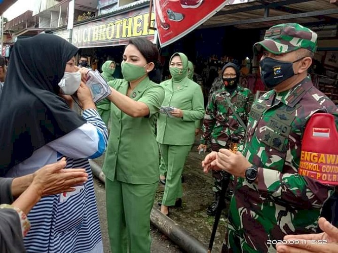 Danrem, Bupati dan Kapolres serta Dandim satu persatu mengedukasi warga dengan membagikan masker dan juga memasangkannya, segenap Forkopimda juga menghimbau warga untuk disiplin menerapkan protokol kesehatan, mengikuti anjuran pemerintah dengan menggunakan masker bila keluar rumah, menjaga jarak fisik, menerapkan hidup bersih dengan selalu mencuci tangan setelah beraktifitas.