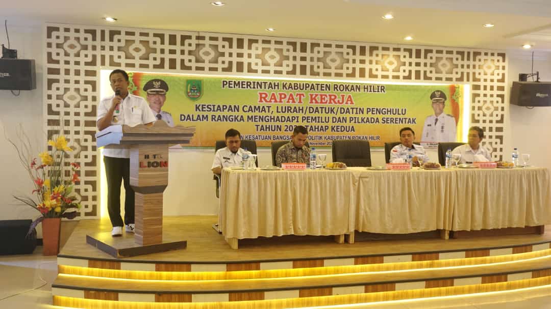 Wabup Rohil H Sulaiman dalam sambutannya mengatakan, adapun tujuan diadakannya kegiatan rapat kerja kesiapan jelang Pemilu dan Pilkada serentak tahun 2004 tahap kedua adalah untuk mengetahui sudah sejauh mana kesiapan para lurah dan penghulu dalam rangka menghadapi pemilu dan Pilkada serentak tahun 2024.