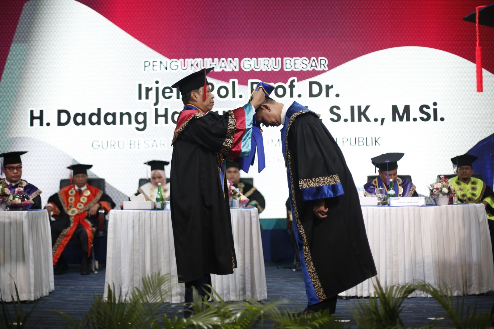 Pengukuhan Irjen Pol Dadang Hartanto juga ditandai dengan orasi dengan judul “Good Governance Berbasis Learning Organization di Era Vuca“. Setelah itu dilakukan penyematan lencana guru besar UMSU oleh rektor.