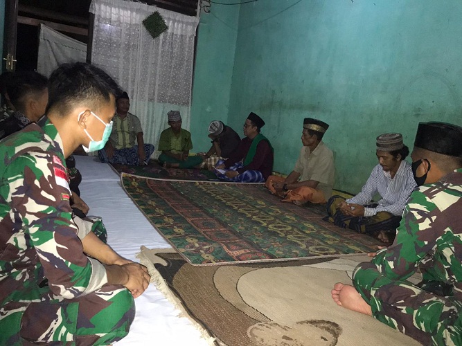 Keerom, Goosela.com – Dalam rangka mewujudkan kemanunggalan TNI dengan rakyat, Pos Kout Satgas Pamtas Yonif 312/Kala Hitam menghadiri kegiatan pengajian salah satu warga di Kampung Workwana, Distrik Arso, Kabupaten Keerom, Papua, Kamis (5/11/2020).