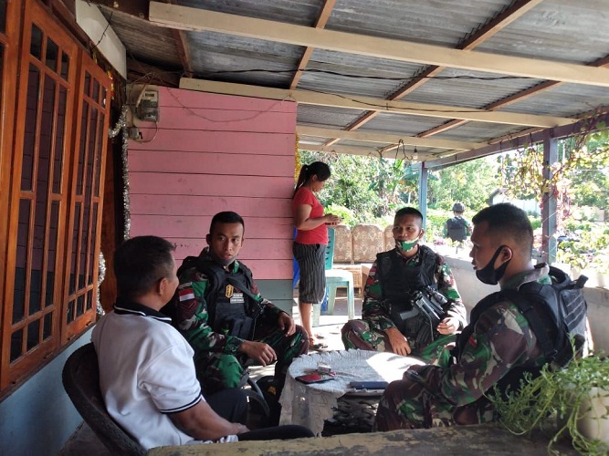 Keerom, Goosela.com – Sarana mempererat tali silaturahmi untuk yang penuh sukacita Natal dan Tahun baru sehingga kita sebagai umat manusia saling menjalin kebersamaan, karena sejatinya kasih itu adalah rasa damai yang memberikan kenyamanan bagi sesama manusia, maka, kali ini Satgas Pamtas Yonif Raider 100/PS Pos Arso 13 dipimpin oleh Serda Boang Manalu selaku Danru Pos Arso 13 melaksanakan anjangsana ke rumah Bapak Eko (47) selaku Kepala Urusan Pembangunan di Kampung Naramben, Distrik Skanto, Kabupaten Keerom, Provinsi Papua, Rabu (30/12/2020).