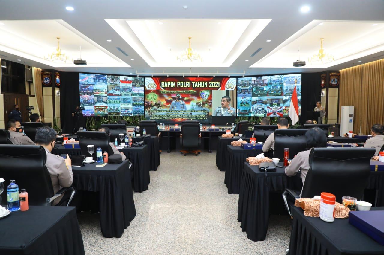 Jakarta, Goosela.com – Kepala Badan Pemelihara Keamanan (Kabaharkam) Polri, Komjen Pol Agus Andrianto, memberikan pengarahan pada Rapat Pimpinan (Rapim) Polri Tahun 2021, di Mabes Polri, Jakarta, Rabu, 17 Februari 2021.