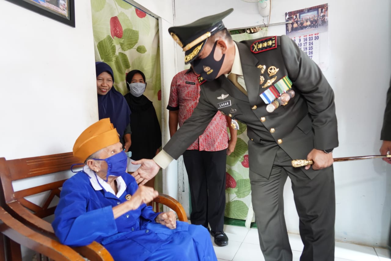 Purwokerto, Goosela.com — Komandan Korem 071/Wijayakusuma Kolonel Inf Dwi Lagan Safrudin, S.I.P., bersama Ketua Persit KCK Koorcab Rem 071 PD IV/Diponegoro Ny. Dewi Lagan Safrudin, Kasrem 071/Wijayakusuma Letkol Kav Kristyanto, S.Sos., beserta Wakil Ketua Persit KCK Koorcab Rem 071 PD IV/Diponegoro Ny. Suci Kristyanto, Dandim 0701/Bms Letkol Inf Chandra, SE., M.IPol., beserta Ketua Persit KCK Cabang XVI Ny. Wiwin Chandra, para Kasi Rem 071/Wijayakusuma, HDCI Banyumas Raya dan Ketua Markas LVRI Kab. Banyumas, serta pengurus Persit, melaksanakan anjangsana mengunjungi dan bersilaturahmi ke beberapa anggota Legiun Veteran Republik Indonesia (LVRI) Kabupaten Banyumas, pada Selasa (10/11/2020).