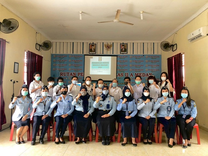 Medan, Goosela.com – Kepala Rumah Tahanan Negara (Rutan) Perempuan Medan Ema Puspita, memimpin upacara pemberian remisi Hari Raya Waisak kepada empat orang warga binaan.