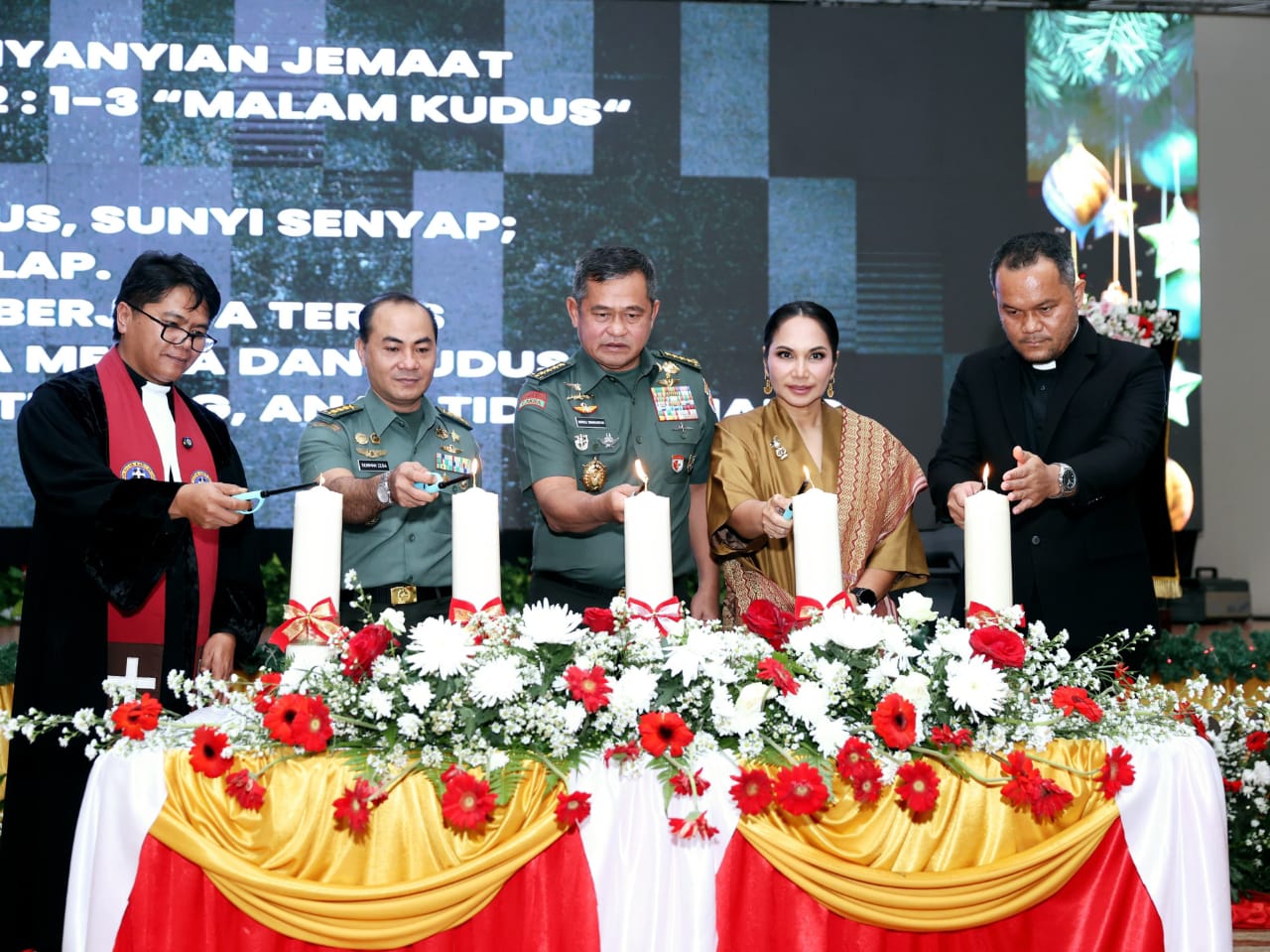 Medan – Kepala Staf Angkatan Darat (Kasad) Jenderal TNI Maruli Simanjuntak, M.Sc., didampingi oleh Ketua Umum Persit Kartika Chandra Kirana Ny. Uli Simanjuntak merayakan Natal Bersama Keluarga Besar Kodam I/Bukit Barisan, sekaligus meninjau renovasi Panti Asuhan Bait Allah di Jalan Pasar III Sunggal, Medan, Sumatera Utara, Selasa (7/1/2025).