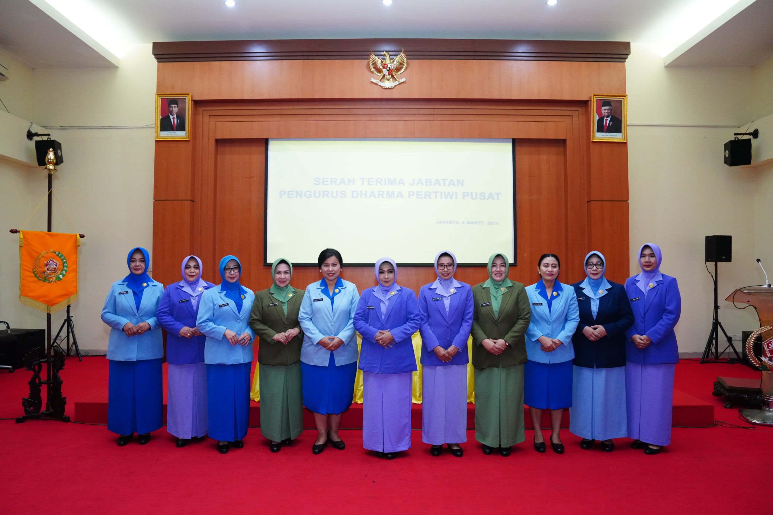 Jakarta – Ketua Harian Dharma Pertiwi (DP) Pusat Ny. Etta Suhartono memimpin sertijab Ketua Seksi (Kasi) Penerangan dan Redaksi, bertempat di Aula Cut Nyak Dien Mabes TNI Cilangkap, Jakarta Timur, Senin (4/3/2024).