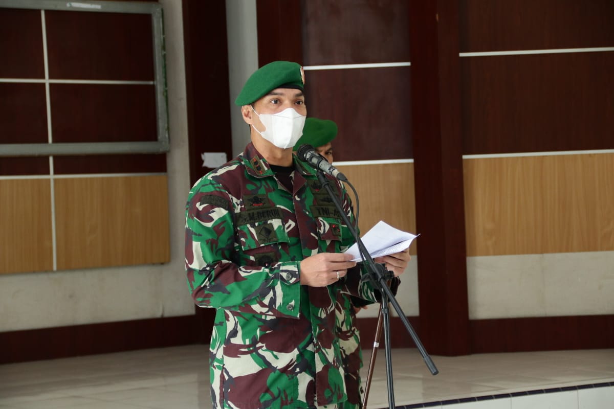 Selanjutnya Dandim mengucapkan terima kasih kepada Mayor Inf MN Simanjuntak yang akan bertugas sebagai Gumil Golongan V Pusdikter Pusterad Bandung.