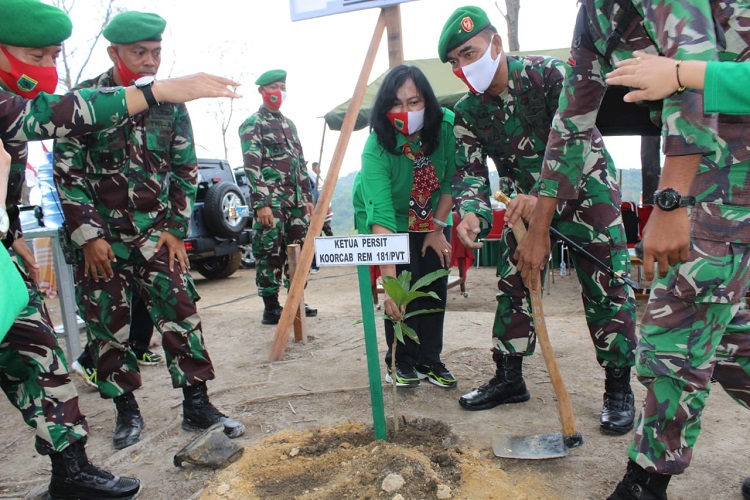 Selanjutnya Danrem 181/PVT menyampaikan bahwa kegiatan penanaman pohon serentak adalah hal penting yang harus dilaksanakan secara nyata dalam menangani krisis lingkungan.