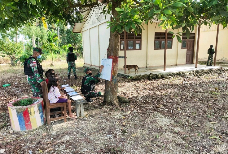 Kurangnya Tenaga Pendidik, Satgas Yonif Raider 100 PS Turut Serta Mengajari Anak-anak Perbatasan Melalui Bimbingan Belajar