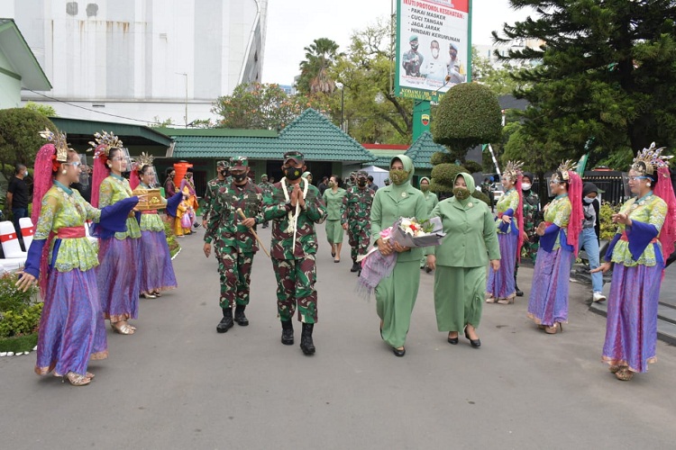 Medan, Goosela.com – Pangdam I/BB Mayjen TNI Hassanudin, SIP, MM, dan Ketua Persit KCK PD I/BB Ny. Dessy Hassanudin serta didampingi PJU Kodam I/BB melaksanakan kunjungan kerja ke Makodim 0201/BS Jl. Pengadilan Medan, Kamis (25/2/2021).