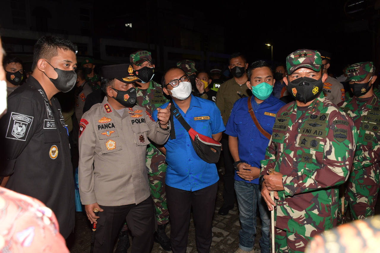Medan, Goosela.com – Panglima Kodam I/Bukit Barisan, Mayjen TNI Hassanudin, SIP, MM, bersama Kapoldasu, Irjen Pol Drs RZ Panca Putra Simanjuntak, MSi, dan Wali Kota Medan, M Bobby Afif Nasution, cek penerapan PPKM Mikro di dua lingkungan di kota medanp padaJumat (28/5/2021) malam.