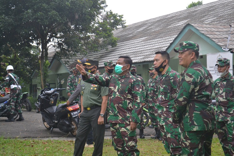 Bogor, Goosela.com – Pangdam III/Siliwangi Mayjen TNI Nugroho Budi Wiryanto, S.I.P., M.M beserta rombongan (Asintel Kasdam III/Slw, Asops Kasdam III/Slw, Danpomdam III/Slw) yang didampingi Danrem 061/Suryakancana Brigjen TNI Agus Subiyanto, S.E., M.Si, meninjau renovasi perumahan dinas (asrama) Yonif 315/Grd, bertempat di Gunung Batu Kota Bogor, Rabu (18/11/2020).