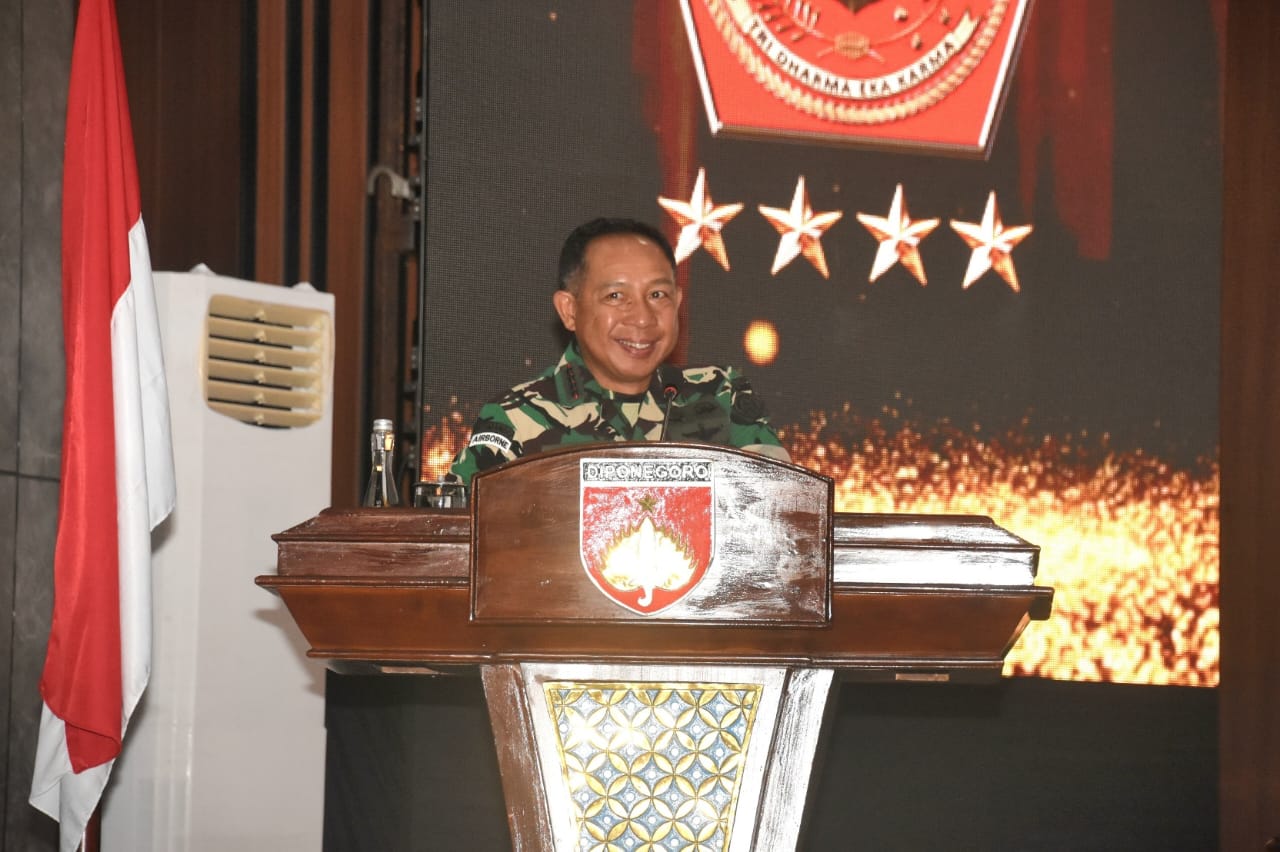 Semarang – Panglima TNI Jenderal TNI Agus Subiyanto memberikan penghargaan dan motivasi kepada para Babinsa jajaran Kodam IV/Diponegoro, bertempat di Balai Diponegoro Makodam IV/Diponegoro, Semarang, Jawa Tengah, Kamis (19/12/2024).