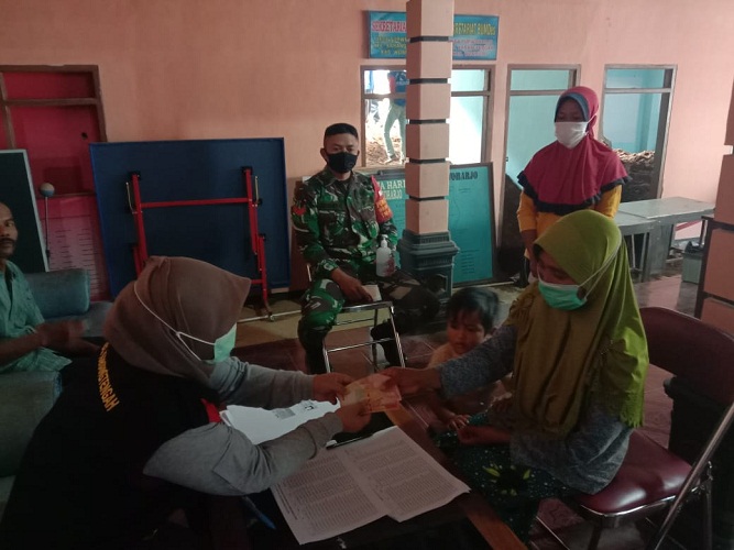 Pastikan Kegiatan Sesuai Protkes, Babinsa Koramil 23/Karangtengah Mendampingi Penyaluran BLT DD di Desa Binaan Masing-Masing