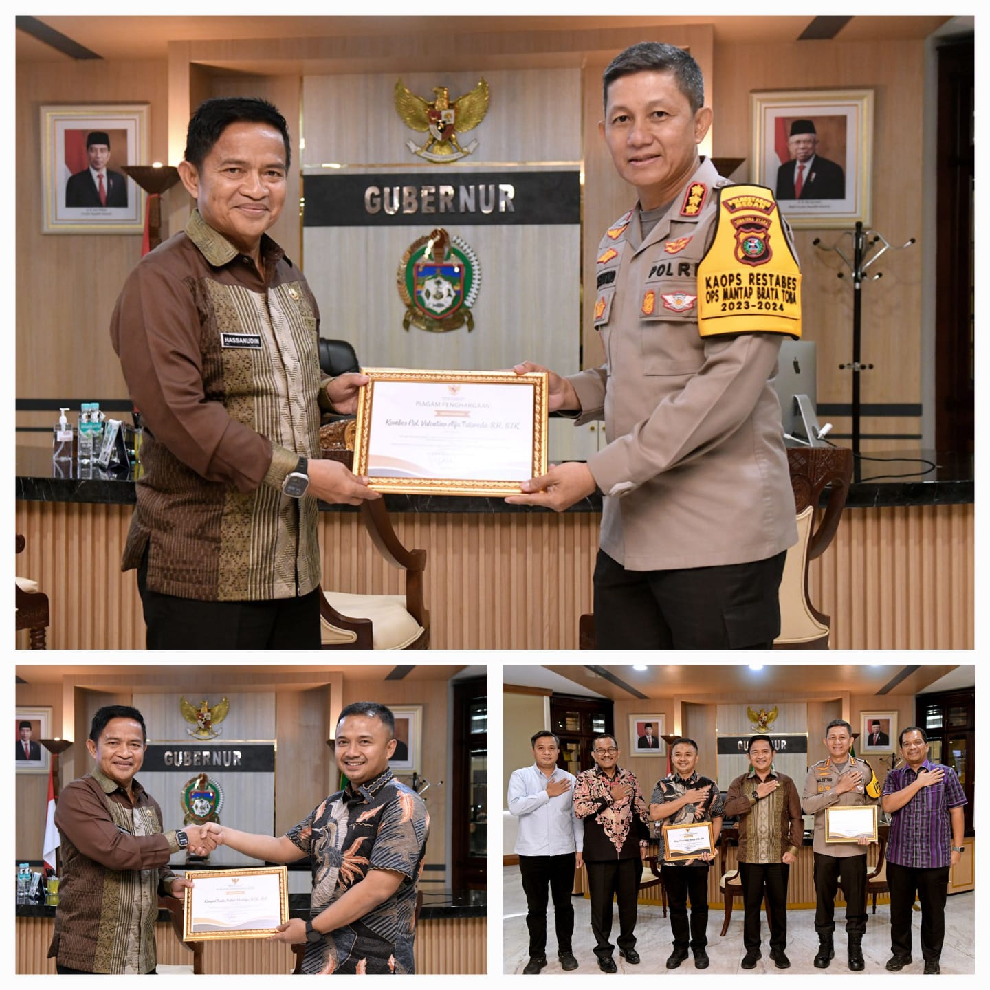 Medan – Gubernur Sumatera Utara (Sumut) Hassanudin memberikan piagam penghargaan kepada Kapolrestabes Medan Kombes Pol Valentino Alfa Tatareda dan Kasat Reskrim Polrestabes Medan Kompol Teuku Fathir Mustafa. Penghargaan ini diberikan atas keberhasilan keduanya mengungkap dua kasus eksploitasi anak dan lima kasus perdagangan orang (human trafficking).