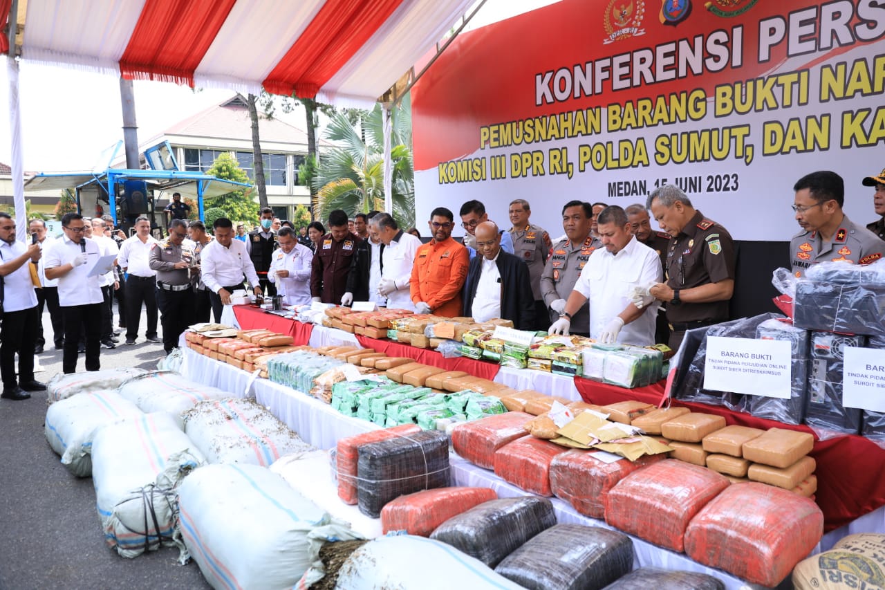 Selanjutnya, hasil tangkapan narkoba berbagai merek itu pun dimusnahkan Polda Sumut bersama Komisi III DPR RI dengan menggunakan mesin incenarator, Kamis (15/6/2023).