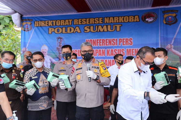 Kegiatan pemusnahan dipimpin langsung Kapolda Sumut Irjen Pol Martuani Sormin, didampingi Waka Poldasu Brigjen Pol Dadang Hartanto, Kepala BNNP Sumut Brigjen Pol Atrial, Dir Res Narkoba Poldasu Kombes Pol Robert Da Costa, Tim Labfor Poldasu, serta pejabat lainnya.