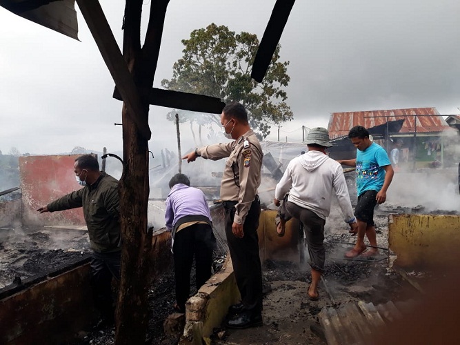 Simalungun, Goosela.com – Dua unit rumah semi permanen milik Johriaman Purba (50) dan Maria Magdalena boru Munthe (53) yang terletak di Urung Purba, Nagori Urung Purba, Kecamatan Purba, Kabupaten Simalungun, Sabtu (23/1/2021 ) siang sekira pukul 13.30 WIB.