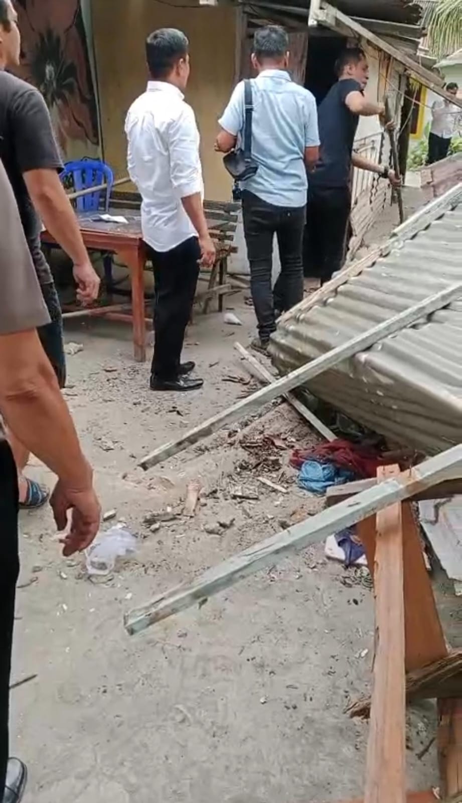 ” Kemudian personil sat narkoba melakukan pembongkaran terhadap barak narkoba yang sangat meresahkan bagi masyarakat di sekitar lokasi.