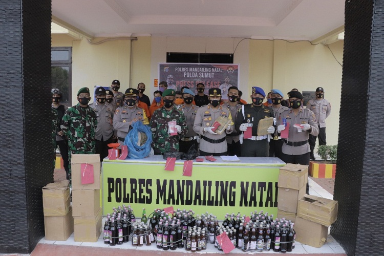 “Kemudian pengungkapan berikutnya pada hari Sabtu tanggal 06 Maret 2021 sekira pukul 01.15 Wib, personil Sat Narkoba Polres Madina melakukan penggerebekan di daerah Desa Tabuyung Kec. Muara Batang Gadis Kab. Madina dan berhasil mengamankan 1 (satu) orang tersangka ID Als BU yang merupakan bandar narkoba, ia ditangkap dalam pondok miliknya yang pada saat itu sedang memegang 2 (dua) buah paket yang diduga narkotika jenis sabu yang merupakan sisa dari hasil 1 Kg yang telah terjual habis dalam waktu 2 (dua) minggu selanjutnya menyita minuman keras merk Anggur Merah dan Kamput sebanyak 164 botol,” sambung Kapolres Madina.