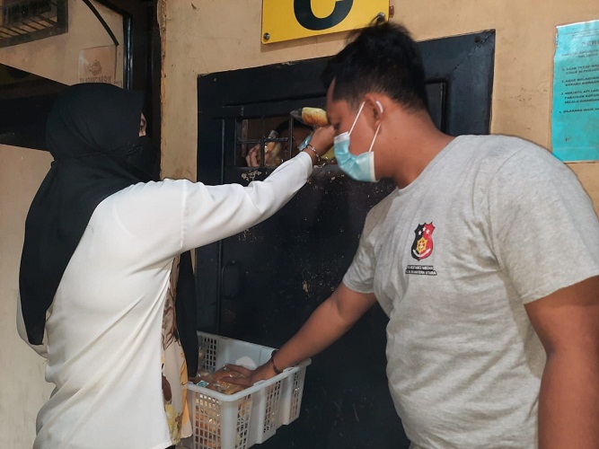 Medan, Goosela.com – Bentuk rasa peduli dengan sesama, Polsek Medan Helvetia Polrestabes Medan dalam hal ini memberikan asupan makanan tambahan kepada para Tahanan yang berada di Polsek tersebut yaitu dengan memberikan berupa roti boong dan aqua, kegiatan ini rutin dilakukan oleh Polsek Medan Helvetia dengan menu yang selalu berbeda.Senin (12/04/2021).