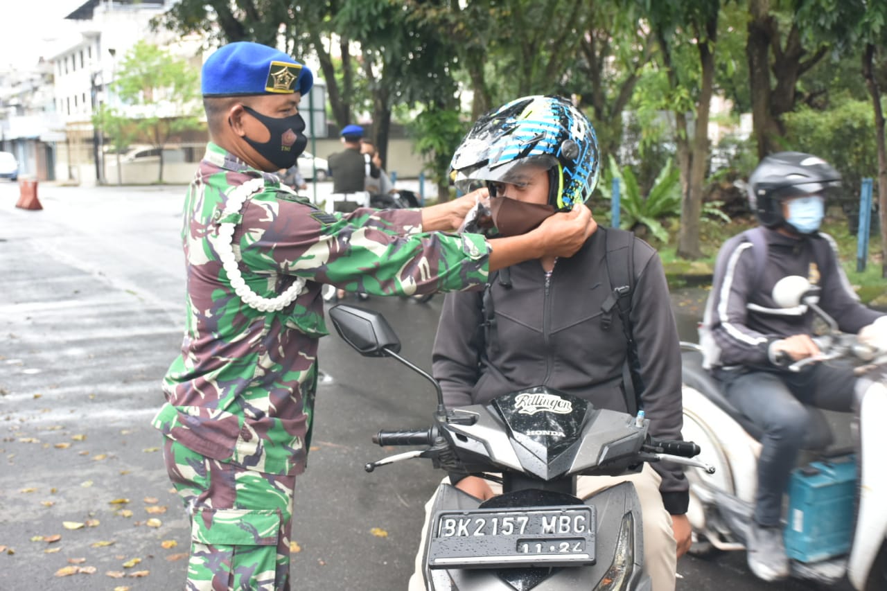 Pomdam I/BB Menggelar Operasi Pendisiplinan Protokol Kesehatan dan Sosialisasi Masker.