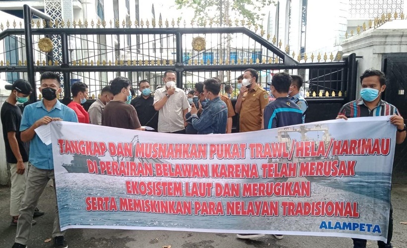 “Saat ini kita masih melihat kapal-kapal pukat Trawl masih beroperasi secara bebas di perairan Belawan yang mangkal digabion Belawan. Meski secara terang-terangan mangkal digabion Belawan yang berdekatan dengan Pelabuhan Perikanan Samudera Belawan namun tidak tersentuh oleh aparat penegak hukum. Kita juga melihat seperti ada pembiaran dari stacke holder terkait mengenai operasi pukat trawl tersebut ,” teriak pengunjuk rasa.