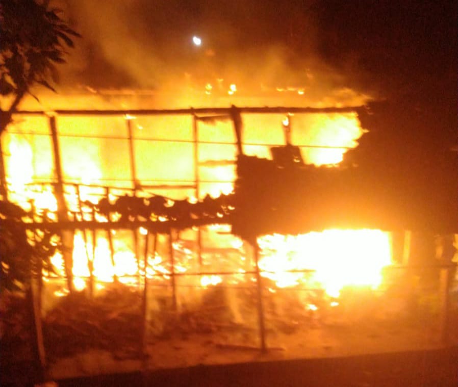 Kobaran api membakar rumah dan seisi perabotan rumah tangga dimulai dari bagian dapur, tempat korban mengolah jajanan untuk dijual di pasar setempat.