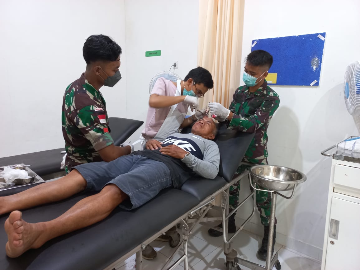 [KAPUAS HULU] – Personel kesehatan dijajaran SSK II Satgas Pamtas Yonarmed 19/105 Trk Bogani ikut serta dalam kegiatan pelayanan pengobatan dan sunatan gratis bersama tenaga kesehatan puskesmas puring kencana dalam rangka memperingati Hari Dokter Nasional yang bertempat di Puskesmas Kecamatan Puring Kencana, Kabupaten Kapuas Hulu, Kalimantan Barat. (Kamis, 27 Oktober 2022).