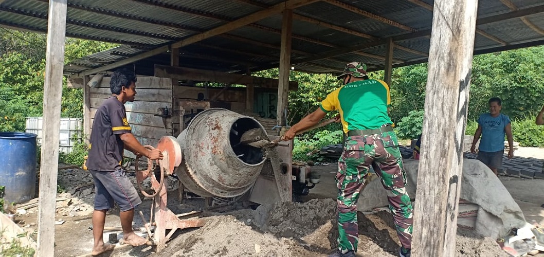 Pada kesempatan tersebut personel Satgas Yonarmed 9 Kostrad bekerja sama dengan masyarakat untuk memproduksi batako. Kegiatan ini disambut antusias oleh masyarakat setempat.