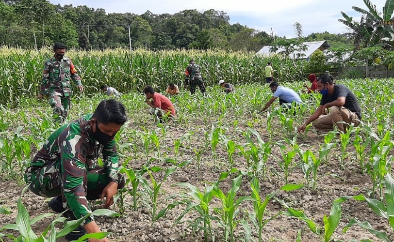 Satgas Yonarmed 9 Kostrad Melaksanakan Ketahanan Pangan di Desa Wainin