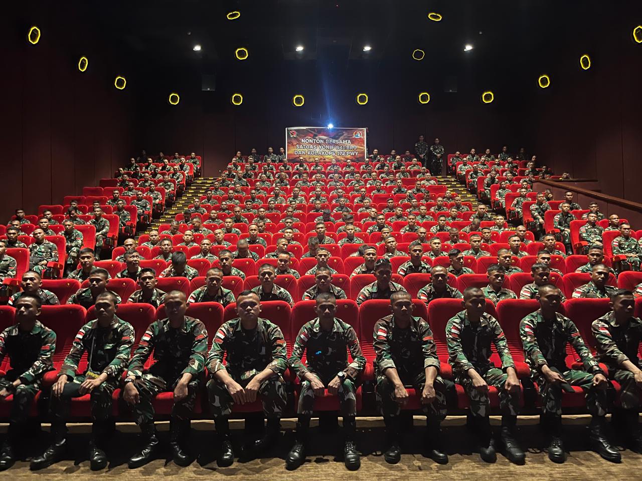 Jayapura – Suasana berbeda terlihat di XXI Mall Jayapura, pada Senin (9/6) siang, ratusan prajurit Satgas Pamtas RI-PNG Kewilayahan Yonif 641/Beruang mengisi studio bioskop untuk nonton bareng film Mission Impossible.