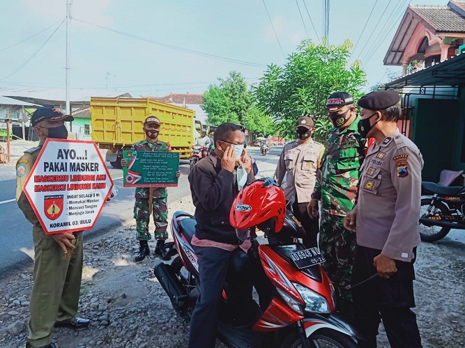 Sukoharjo, Goosela.com – Anggota Koramil 03/Bulu bersama Polsek Bulu dan Satpol PP Kec. Bulu, dimasa Pandemi Covid-19 secara rutin menyampaikan himbauan dan edukasi Protokol Kesehatan (Prokes) Covid-19 kepada warga binaannya.