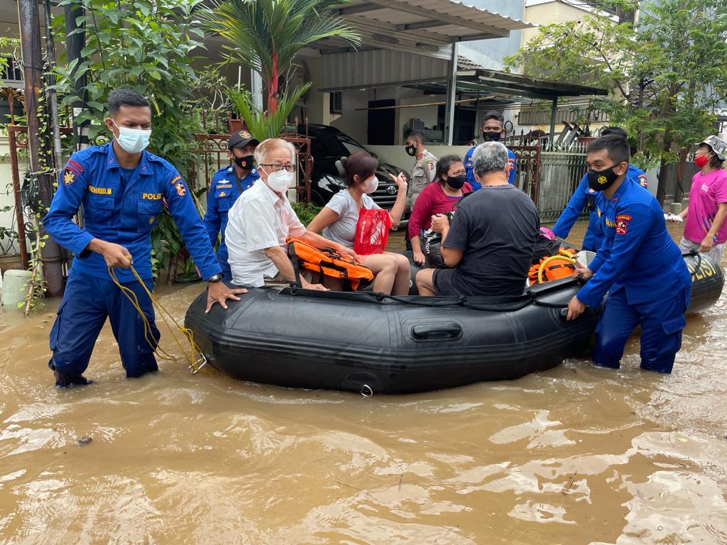 Sigap, Ditpolair Korpolairud Baharkam Polri Turun Langsung Evakuasi Korban Banjir Jakarta