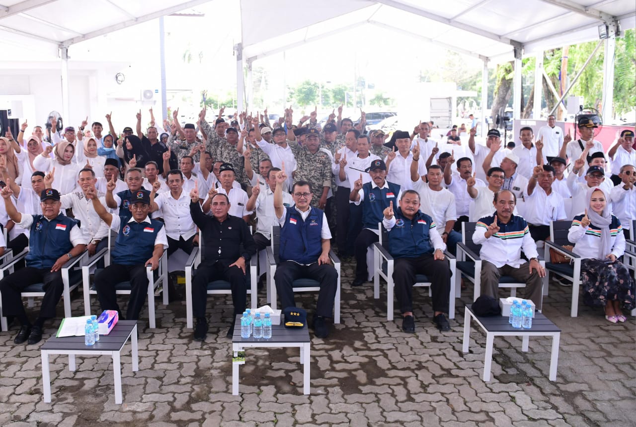 Medan – Kalangan Profesi Hukum dan para Purnawirawan TNI/ Polri, Purna ASN dan Komunitas Perempuan lakukan Deklarasi pemenangan Capres Anies dan Cawapres Muhaimin ( AMIN ) di depan Ketua Tim Pemenangan Daerah ( TPD ) Sumut Edy Rahmayadi dalam rangka memenangkan dan mengawal Pemilu 2024 menang satu putaran atau 65 % suara pemilih, Sabtu (23/12’2023).