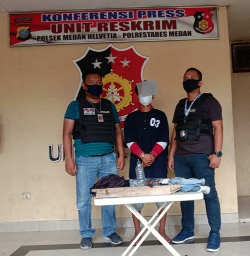 Berdasarkan Laporan Polisi Pelapor : LP/525/XI/2020/SU/Polrestabes Medan/Polsek Medan Helvetia. Rabu tanggal 11/11/2020 dan informasi yang didapat dan pengembangan dilapangan, Tekab Polsek Medan Helvetia dapat mengamankan Pelaku di jalan.Listrik No.10 kelurahan Petisah Tengah Medan Baru sekira pukul 23.30 wib hari Rabu 11/11/2020 ditempat persembunyiannya.
