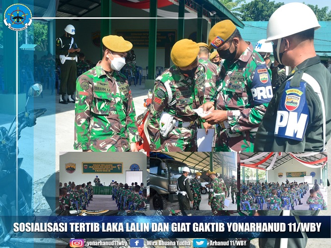 Tim Penyuluh Penegakkan Ketertiban Laka Lalin dan Gaktib Detasemen Polisi Militer I/5 dipimpin oleh Dansubdenpom I/5-2 Binjai Kapten Cpm Agus Setiawan dan Dansubdenpom 1/5 – 3 P. Brandan Kapten Cpm Wahyudi melaksanakan sosialisasi kepada seluruh personil Batalyon Arhanud 11/WBY dengan tetap menerapkan protokol kesehatan.