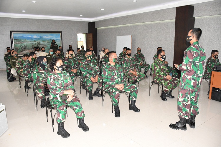 Kegiatan yang dipimpin Kapendam I/BB, Kolonel Inf Zeni Djunaidhi, SSos, MSi, di Media Centre Pendam I/BB, Jln Gatot Subroto Km 7,5 Medan, Rabu (30/12/2020), dilangsungkan dengan penerapan disiplin Protokol Kesehatan pencegahan Covid-19 secara ketat.